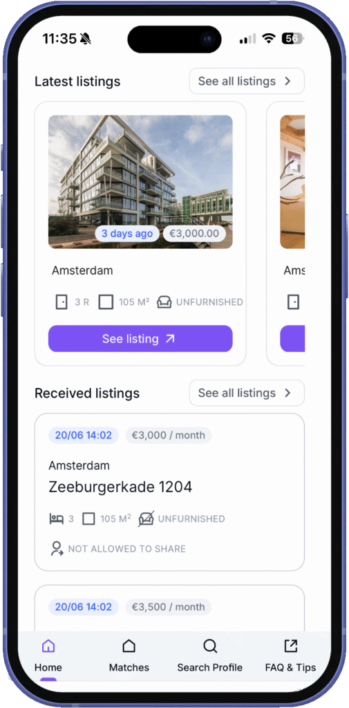 Je kunt op ieder moment inloggen op jouw RentSlam omgeving en je woonwensen aanpassen. Zo blijf je altijd de beste matches ontvangen en krijg je meer geschikte woningen toegestuurd.